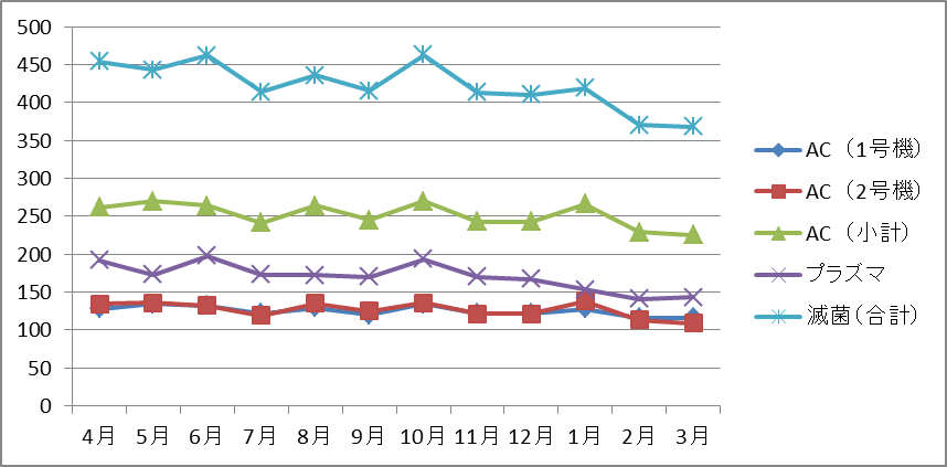ウォッシャーディスインフェクター2台、超音波洗浄機1台、乾燥機2台、シーラー2台、高圧蒸気滅菌器2台、プラズマ滅菌器1台、逆浸透精製水製造装置(RO水)1台
