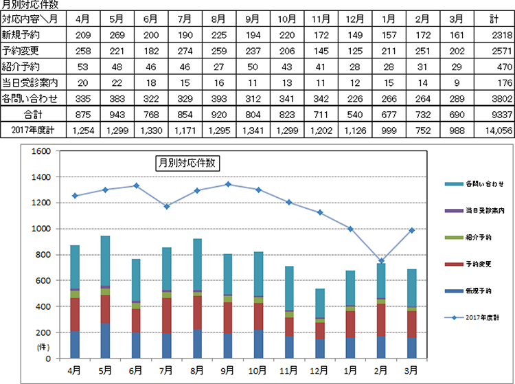 - 医療サービスセンター各部署との連携を図り、患者さんの視点に立って温かな優しい雰囲気の 受付を創り、患者さんに安心と満足をしていただけるようにする。